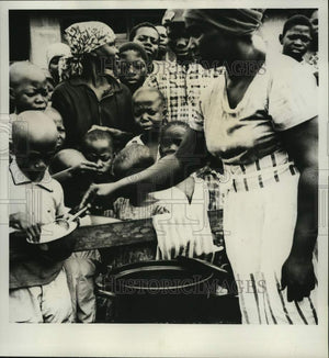 1968 Press Photo A woman gives high-protein food to Nigerian children
