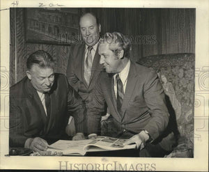 Examining the Apollo Saturn V Roll of Honor which contains the names of many New Orleans area residents are, from left, Richard H. Nelson, general manager of the Saturn/Apollo Skylab Division of The Boeing Company; Earl Dean, manager of Boeing in New Orleans, and Mayor Moon Landrieu to whom a copy for the city was presented.
