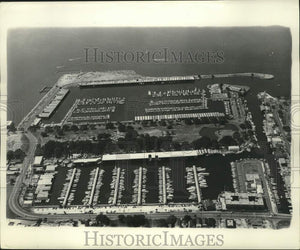 1977 Press Photo Aerial View Of Orleans Marina Showing Buildings, Piers & Boats