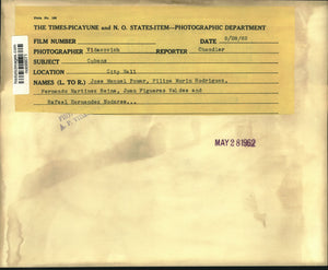 Left to right: Jose Manuel Angel Pomar, Filipe Morin Rodriguez, Fernando Martinex Reina, Juan Figueras Valdes and Rafael Hernandez Nodarse. Cubans, City Hall.