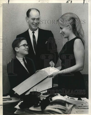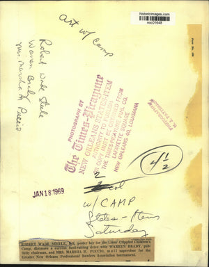 Robert Wade Steele, left, poster boy for the Lions' Crippled Children's Camp, discusses a current fund-raising drive with Warren Brady, publicity chairman, and Mrs. Marsha M. Puccio, mail supervisor for the Greater New Orleans Professional Bowlers Association tournament.