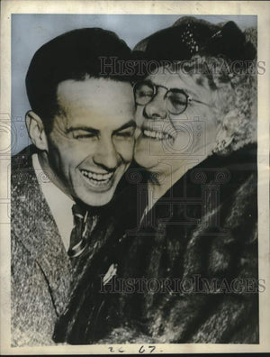 1947 Press Photo Walter Steele hugs his mother in court, Massachusetts