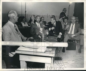 Crommick, Representative Hank Lauricella, Governor John McKeithen and General Wade. Representative Hank Lauricella press conference, Louisiana
