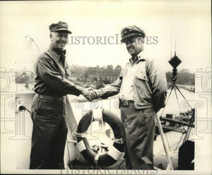 1964 Press Photo Captain George F. Price and Major General A.L. Bowser on Ship