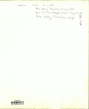 Algiers Library - Mrs. Henry Stewart and Other Workers. Mrs. Henry Stewart, library side, Mrs. William Nagel, clerk typist, Miss Kathy Plauche, page.