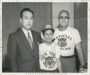 Something new will be added to this year's Item-NORD-Chevrolet Soap Box Derby. Consuls of all foreign nations in New Orleans have been invited to sponsor boys in the 1957 affair. First to sing up is Nisi Sato, consul of Japan. And here's the young Orleanian he's sponsoring, Robert A. Steudlein. With them is Warren Gracianette, derby co-ordinator for NORD.