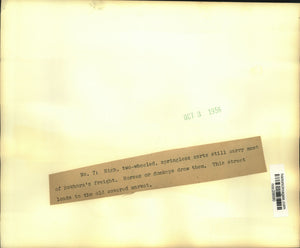 High, two-wheeled, springless carts still carry most of Bokhara's freight. Horses or donkeys draw them. This street leads to the old covered market. Bissonnette--Russia--No. 7.