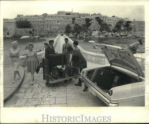 St. Stefan. Hand truck takes luggage of arriving guests at entrance to causeway which is a pedestrian bridge. Cars must be left in parking lot on mainland. Profiting by the examples of such neighbors as Greece and Italy, the Yugoslavian government jumped into the tourist business with un-Communist zeal, and has been busily exploiting its scenic and cultural resources for a decade. One of their outstanding achievements has been the conversion of the whole island community of St. Stefan into a tourist hotel which can accommodate 200 guests in houses which were once privately owned. New Orleans