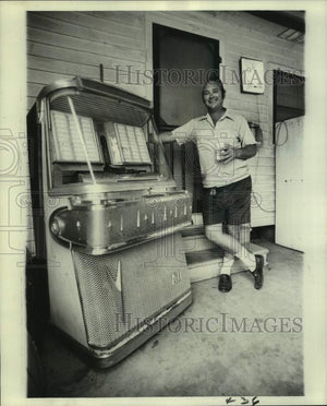 1976 Press Photo Warren Seher and Antique Jukebox - noc41790