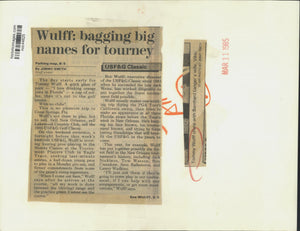 Tommy Wulff chats with Bernhard Langer's wife, Vikki. - The day starts early for Tommy Wulff. A quick glass of juice, "I love drinking orange juice in Florida", a cup of coffee, then it's out to the golf course. With no clubs? This is no pleasure trip to Coral Springs, Florida. Wulff's not there to play, but to sell. Sell New Orleans, sell Lakewood Country Club, sell the 1985 USF&G Golf Classic.
