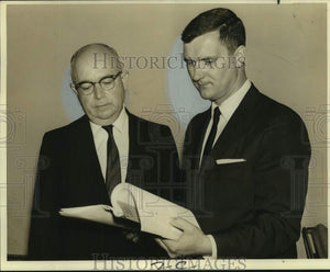 Plans for a German Seaman's House are examined by the Reverend Fritz Winckelmann, left, and Karl Paschke as efforts get underway to find a site for the center which would give German seamen a place for recreation and obtain information about New Orleans. The Reverend Winckelmann is seamen's pastor and present pastor of the St. John United Church of Christ. Paschke heads a new corporation seeking a site. He said West Germany is the No. 2 trading associate for this port and that nearly 300 German vessels call here each year.