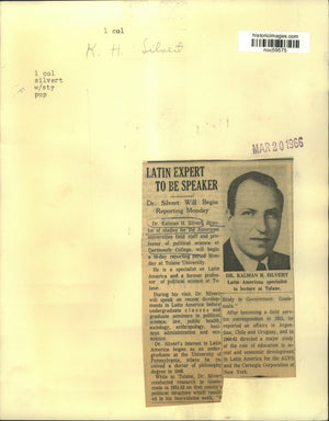 Doctor Kalman H. Silvert, director of studies for the American universities field staff and professor of political science at Dartmouth College, will begin a 10-day reporting period Monday at Tulane University. He is a specialist on Latin America and a former professor of political science at Tulane.