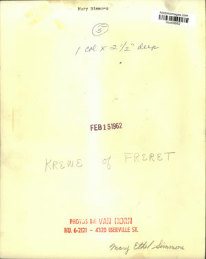 1962 Press Photo Mary Simmons, Krewe of Freret - noc59662
