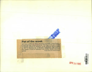 1985 Press Photo Joe Ivey, a Jefferson SPCA adoption counselor, holds Prince