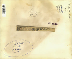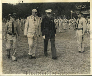 Reviewing the Tulane University 160-man Naval Reserve Officers Training Corps unit Tuesday during special Navy Day ceremonies are U.S. Representative R. Edward Hebert (left) and Colonel R.W.L. Bross, U.S. Marine Corps, commanding officer of the unit. New Orleans