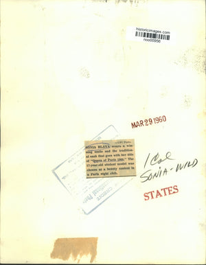 1960 Press Photo Sonia Blaya wears sash as the 1960 Queen of Paris Night Club