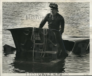 1976 Press Photo New Orleans Police Department diver Lonnie Campbell atop Car