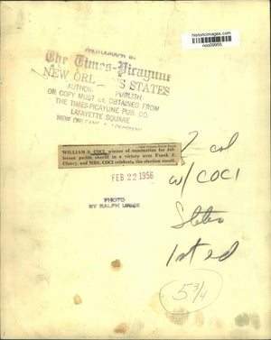 1956 Press Photo William S. Coci, winner of nomination Jefferson parish sheriff