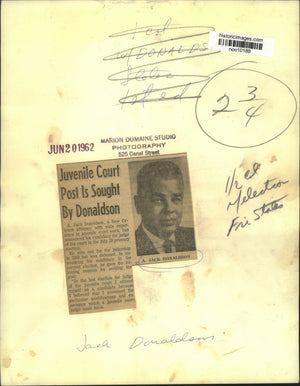 Juvenile Court Post Is Sought By Donaldson -- A. Jack Donaldson, a New Orleans attorney with wide experience in juvenile court work, has announced his candidacy for judge of the court in the July 28 primary election. He also ran for the judgeship in 1960 but was defeated. In announcing his candidacy in the current election, he gave the following reasons for seeking the post: "In the last election for judge of the juvenile court I offered myself as a candidate because I believed that I possessed the particular qualifications and experience which a juvenile court judge must have."