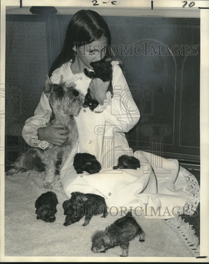 1971 Press Photo Melanie Ann Normand with schnauzer mother & puppies at her home