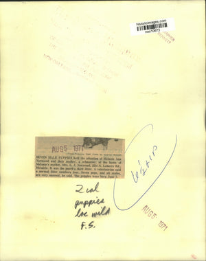 Seven male puppies hold the attention of Melanie Ann Normand and their mother, a schnauzer, at the home of Melanie's mother, Mrs. L.J. Norman, 3524 N. Labarre Rd., Metairie. It was the pooch's third litter. A veterinarian said a normal litter numbers four. Seven pups, and all males, are very unusual, he said. The puppies were born June 7.