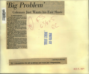 Big Problem' - Coleman Just Wants his Fair Share -- 'If you've got a job and you do it well," says E.C. Coleman, "you should get paid accordingly." The New Orleans Jazz forward has yet to sign his contract for the upcoming basketball season and although Coleman feels "it's a big problem" he says he's seen bigger ones. --- E.C. Coleman does the job on defense and wants just compensation.