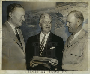 His selection as the apprentice representative of Louisiana, Mississippi, Texas and Oklahoma to the Congress of American Industry is announced Thursday to Hilyard Franklin Durr (right), apprentice employed by the Freeport Sulfur Company. Making the announcement is Streuby L. Drumm, member of the board of directors of the National Association of Manufacturers, sponsor of the congress. Looking on at left is E.D. Wingfield, Freeport Sulfur vice-president. The congress will be held in New York city Dec. 25.