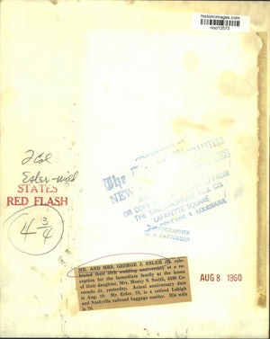 Mr. and Mrs. George J. Esler Jr. celebrated their 50th wedding anniversary at a reception for the immediate family at the home of their daughter, Mrs. Henry S. Smith, 4526 Coronado dr. yesterday. Actual anniversary date is Aug. 10. Mr. Esler, 75, is a retired Lehigh and Nashville railroad baggage master. His wife is 76.