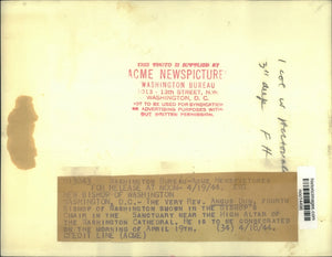 New Bishop of Washington. Washington, D.C. The very Reverend Angus Dun, fourth Bishop fo Washington shown in the Bishop's Chair in the Sanctuary near the Hig Altar of the Washington Cathedral. He is to be consecrated on the morning of April 19th.