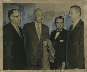 Among those who appeared at the city council meeting Thursday to speak in opposition to the city's tax on in-city sale of materials delivered outside of New Orleans were (from left) M.F. Hilbert, vice-president of Woodward, Wight and Company; Leo L. Hirsch, president of the Electrical Supply Company; Theo E. Ducos, purchasing agent for Kaiser Aluminum and Chemical Corporation, and Walter S. Simpson, vice-president at C.T. Patterson and Company.