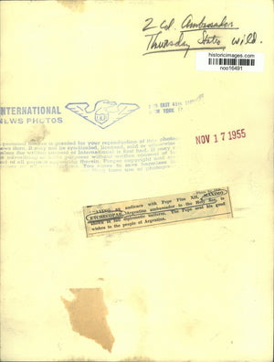 Having an audience with Pope Pius XII, Maximo Etchecopar, Argentime ambassador to the Holy See, is shown in full diplomatic uniform. The Pope sent his good wishes to the people of Argentina.