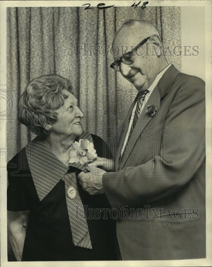 Something to celebrate. Fred Fisher Sr. pins a corsage on his bride of 60 years as they observed their anniversary last weekend. Retired from the New Orleans Police Department, Mr. Fisher is 79, his wife is 78, and they reside at 1428 Gen. Collins Avenue, Algiers. The couple has two children, 6 grandchildren and 7 great-grandchildren.