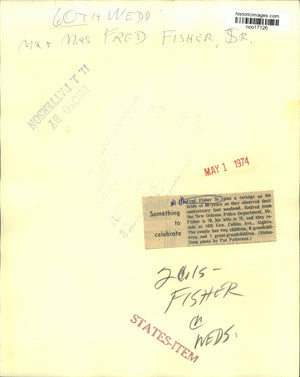 1974 Press Photo Mr. and Mrs. Fred Fisher Sr. Celebrate Their 60th Anniversary