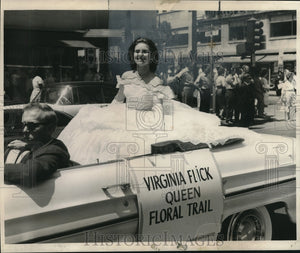 1961 Press Photo Floral Trail Queen Virginia Flick rides in a car during parade