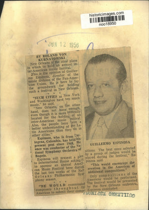 Guillermo Espinosa - New Orleans is the ideal place in which to hold an annual inter-American music festival. This is the opinion of Guillermo Espinosa, director of the music division of the Pan-American Union. He is here to lay the groundwork for holding such a festival in New Orleans.