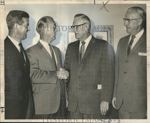 National Ice Association officers elected at the group's annual convention at the Roosevelt Hotel include, from left, Quin Gautier, Pascagoula, Mississippi, vice-president; Robert G. Maginnis, Cary, Illinois, vice-president, and K.F. Addison, Tulsa, Oklahoma, president. Support of a new bipartisan organization designed to work for the election of congressmen who favor the principles of the competitive enterprise system was urged today by James W. Douthat of Washington, D.C., assistant vice-president of the National Association of Manufacturers. Addressing the annual convention of the National Ice association at the Roosevelt Hotel here, Douthat said the new organization, the Business-Industry Political Action Committee (BIPAC), is being vigorously supported by the national Association of Manufacturers and other groups.
