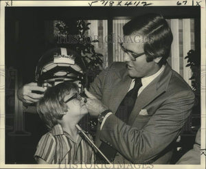 Admiring Glances - Young Fred Bruce of New Orleans and Miami quarterback Bob Griese exchange admiring glances through eyes that are less than perfect. Little Fred was doing his bit to promote the Saints-Dolphin preseason football game in the Superdome which benefits the Lions Club eye fund while Griese was in town to address a meeting of opticians. "I hope you see a lot of Saints," the youngster told Griese.