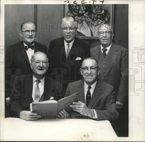 Elected to office in the National Athletic Club Tuesday night at Johnny's Restaurant, 1000 N. Rampart, were (seated from left) William P. Hickey Sr., president, and Nicholas Camarata, vice president. The occasion also marked the 55th anniversary of the club. Both Hickey and Camarata are charter members. Other charter members are (standing from left) Louis Dutel Sr. William L. Mayer and Frank X. Gaupp. Other officers (not shown) are Joseph Ragusa, secretary, and Salvatore Ferrera, treasurer.