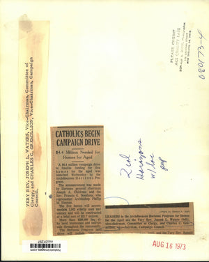 Leaders in the Archdiocesan Horizon Program for Homes for the Aged are the Very Reverend Joseph L. Waters (left), vice-chairman, Committee of Clergy, and Charles C. Gremillion, vice-chairman, Campaign Council. A $4.4 million campaign drive to finalize funding for five homes for the aged was launched Wednesday by the Archdiocesan Horizons Program.