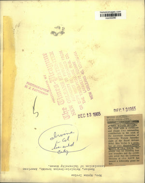 Mrs. Wynne Irvine was cited with a certificate and plaque for outstanding contributions to the work of the American Association of University Women Saturday night at the Royal Orleans Hotel. Mrs. Irvine is a member of the Metairie-Gretna Branch of the AAUW. The plaque was for founding four new branches and the certificate noted that the Louisiana Division of the AAUW was named a fellowship grant for her.