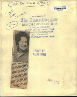 Mrs. T. Milton Hynes, has been elected president of the New Orleans Ladies of Charity with Mrs. Helen Donnoud as first vice-president. Other officers include Mrs. William C. Vinet, second vice-president; Miss Bridget Manca, corresponding secretary; Mrs. Edwin A. Sullivan Jr., recording secretary; Miss Ethel Mamre, finance secretary; and Mrs. Arthur Kelly, treasurer. The Reverend Bernard Degan, C.M., will serve as spiritual director and Sister Mary Gertrude, D.C., will act as moderator.