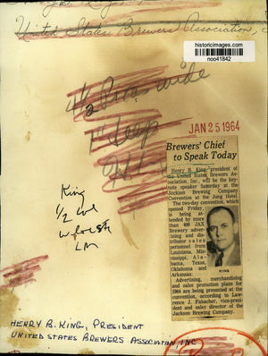 1964 Press Photo Henry B. King, President of United States Brewers Association