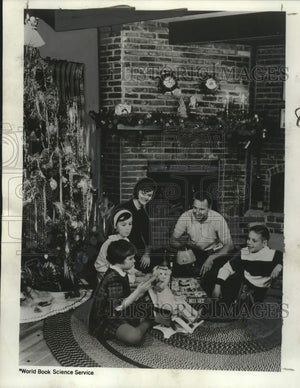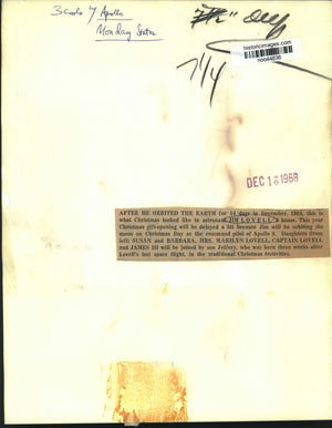 After he orbited the earth for 14 days in December 1965, this is what Christmas looked like in astronaut Jim Lovell's house. This year Christmas gift-opening will be delayed a bit because Jim will be orbiting the moon Christmas Day as the commander pilot of Apollo 8. Daughters (from left) Susan and Barbara, Mrs. Marilyn Lovell, Captain Lovell and James III will be joined by son Jeffery, who was born three weeks after Lovell's last space flight, in the traditional Christmas festivities.