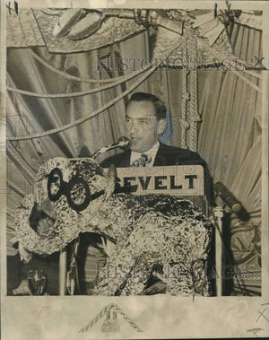 Representative William E. Miller, the Republican vice-presidential candidate, speaks in favor of a tidelands settlement for Louisiana during a fund-raising dinner at the Roosevelt Hotel last night.