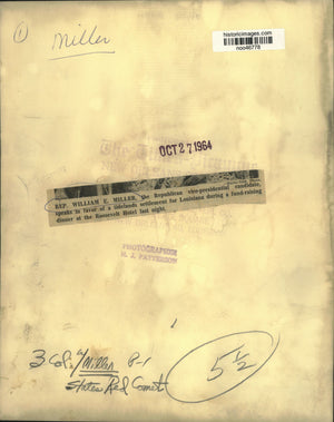 1964 Press Photo Representative William Miller at Roosevelt Hotel fund raising
