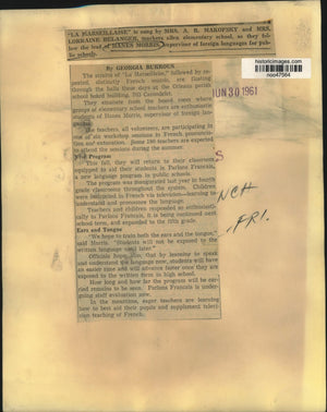 "La Marseillaise" is sung by Mrs. A.R. Makofsky and Mrs. Lorraine Belanger, teachers Allen elementary school, as they follow the lead of Hanes Morris, supervisor of foreign languages for public schools. The strains of "La Marseillaise," followed by repeated, distinctly French sounds, are floating through the halls these days at the Orleans parish school board building, 703 Carondelet.