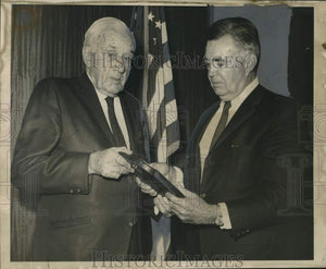 Accepting A Plaque from John P. Labouisse (right), president pro term of the Sewerage and Water Board, at City Hall Wednesday morning is John E. Morrill, S&WB secretary-executive to the S&SW and to the waterworks industry. The plaque was awarded by the American Waterworks Association.