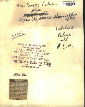 1963 Press Photo Mrs. Gregory pres., Alpha Chi Omega Alumnae Club of New Orleans