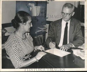 1962 Press Photo Clerk & Deputy Clerk review Jury Duty form in New Orleans