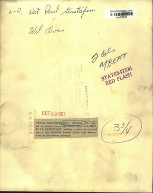 1961 Press Photo Texas Rancher Will Owens with Det. Paul Gustafson - noo52323